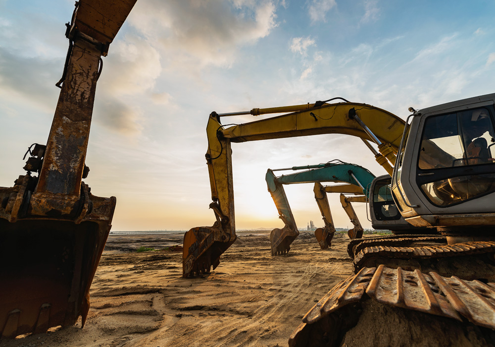 We own many pieces of heavy equipment used for site work, including excavators, off highway